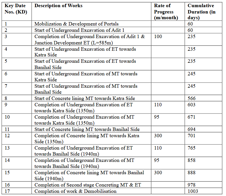 3.4. The Project was divided into five parts - construction of ADIT (585 meters), main tunnel Banihal (1940 meters), main tunnel Katra (1350 meters), escape tunnel Banihal (1940 meters) and escape tunnel Katra (1350 meters).