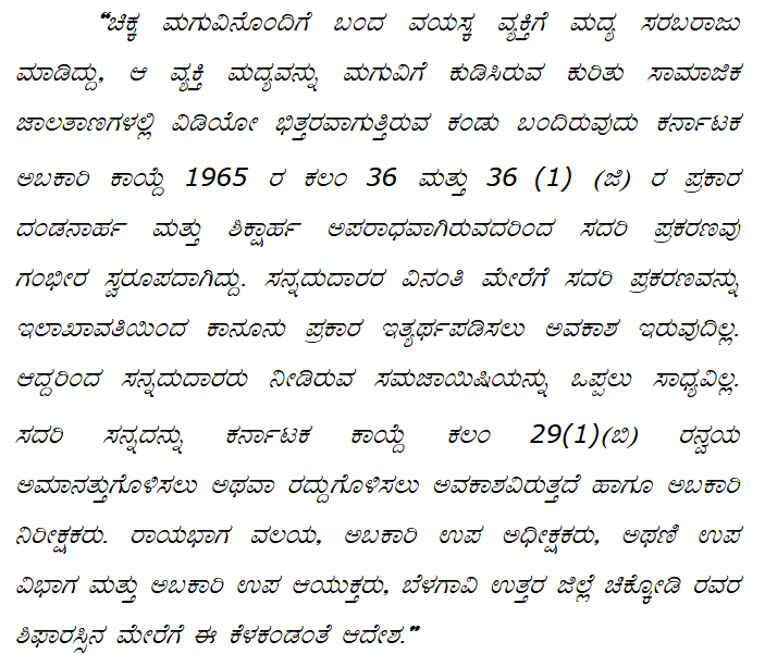 - Karnataka Excise Act, 1965