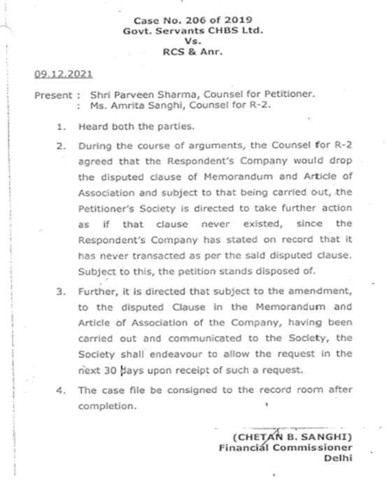1. The petitioner, a Government Servants Cooperative House Building Society Ltd., having its address at 9 Paschimi Marg, Vasant Vihar, New Delhi-110057 has approached this Court through its authorized signatory i.e. Secretary, authorized through resolution dated 06th April, 2024, questioning the order dated 12th January, 2024, passed in exercise of review jurisdiction thereby confirming the order dated 09th December, 2021, passed by the respondent no.1/Financial Commissioner in exercise of revisional jurisdiction.