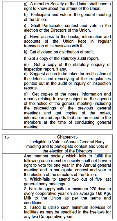 17. Clause 15.2 of the bye-laws provides that a member who fails to fulfil the criteria specified would be ineligible to vote for one year in the Annual General Meeting and to participate, contest and vote in the election of Directors of the Union.