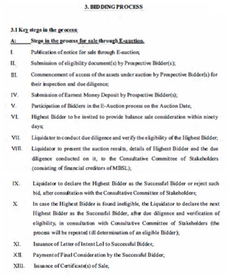 2. It is submitted that the petitioner was one of the shortlisted participant in the process of sale of MBSL as a going concern, but the right of participation has been virtually taken away from the petitioner on account of the fact that the petitioner did not receive any link or instruction/notification for participating in the pre-qualification proceedings.