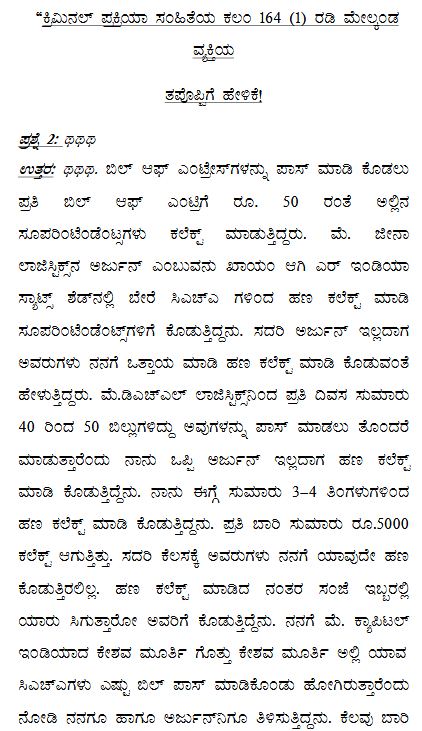 36. The relevant portion of the statement under Section 164(1) of the Code, by respondent No.2 (Pw-2, Keshavamurthy P) is as under: