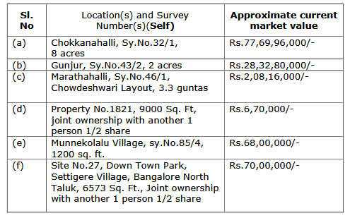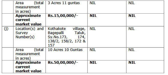3.11 Adverting to allegation with respect to land bearing Sy.No.9/1 measuring 1 acre 37 guntas situated at Chinnakayalapalli Village, Bagepalli Taluk, Chikkaballapur District, it is contended that said Srinivas Reddy is the brother of Respondent No.1, as there are certain inter se disputes between Respondent No.1 and his brother with regard to sharing of the properties, the same is shown in the affidavit as the property of Respondent No.1.