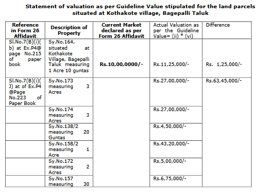 3.16 As regards the allegation of Respondent No.1 furnishing false information in relation to valuation of properties in Sl.No.7 of Form 26 Affidavit, it is contended that Respondent No.1 has furnished the correct valuation of the properties and has not undervalued any properties.