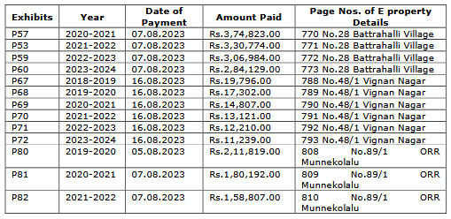 6.6 That as per the details at Sl.No.(7)B(ii), Respondent No.1 and his wife own 6 non-agricultural properties, 8 commercial buildings, 2 residential properties. Respondent No.1 has not paid the property tax in respect of the said properties as evidenced by the documents produced through PW.2 as per Exs.P57 to 60, 67 to 72, 80 to 84, 94 to 96, 106 to 108, 118 to 120. However, a false declaration is made that there are no dues towards the property tax. That the contention of Respondent No.1 that since there was no demand, the same was declared as 'Nil' is incorrect in the light of provisions of Sections 2(41), 144(8) and 148 of Bruhat Bengaluru Mahanagara Palike Act, 2020 wherein it is an obligation of the land owner to pay the property tax as and when it becomes due. Absence of demand does not mean that the property tax was not due.