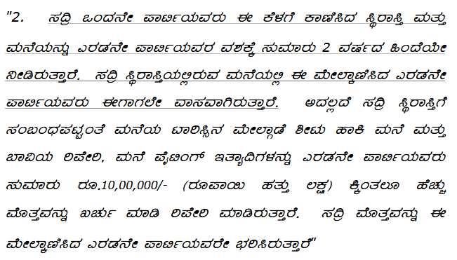 7. The aforesaid clause clearly indicates that the possession of the suit schedule property was delivered to the plaintiff two years prior to the agreement. A perusal of the plaint averment at paragraph 3 makes it further clear as to how the plaintiff was in possession of the suit schedule property and thereafter, an agreement of sale dated 23.06.2018 between the parties came to be executed. It is not in dispute that the transfer of possession of the suit schedule property was effected in favour of the plaintiff much prior to the agreement in question and there is no transfer of possession in part performance of the said agreement.